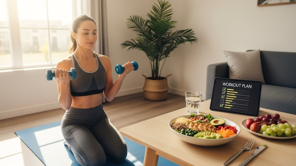 The best part? You don’t need fancy gym equipment to get started. A set of dumbbells and a mat are enough to follow most exercises at home.